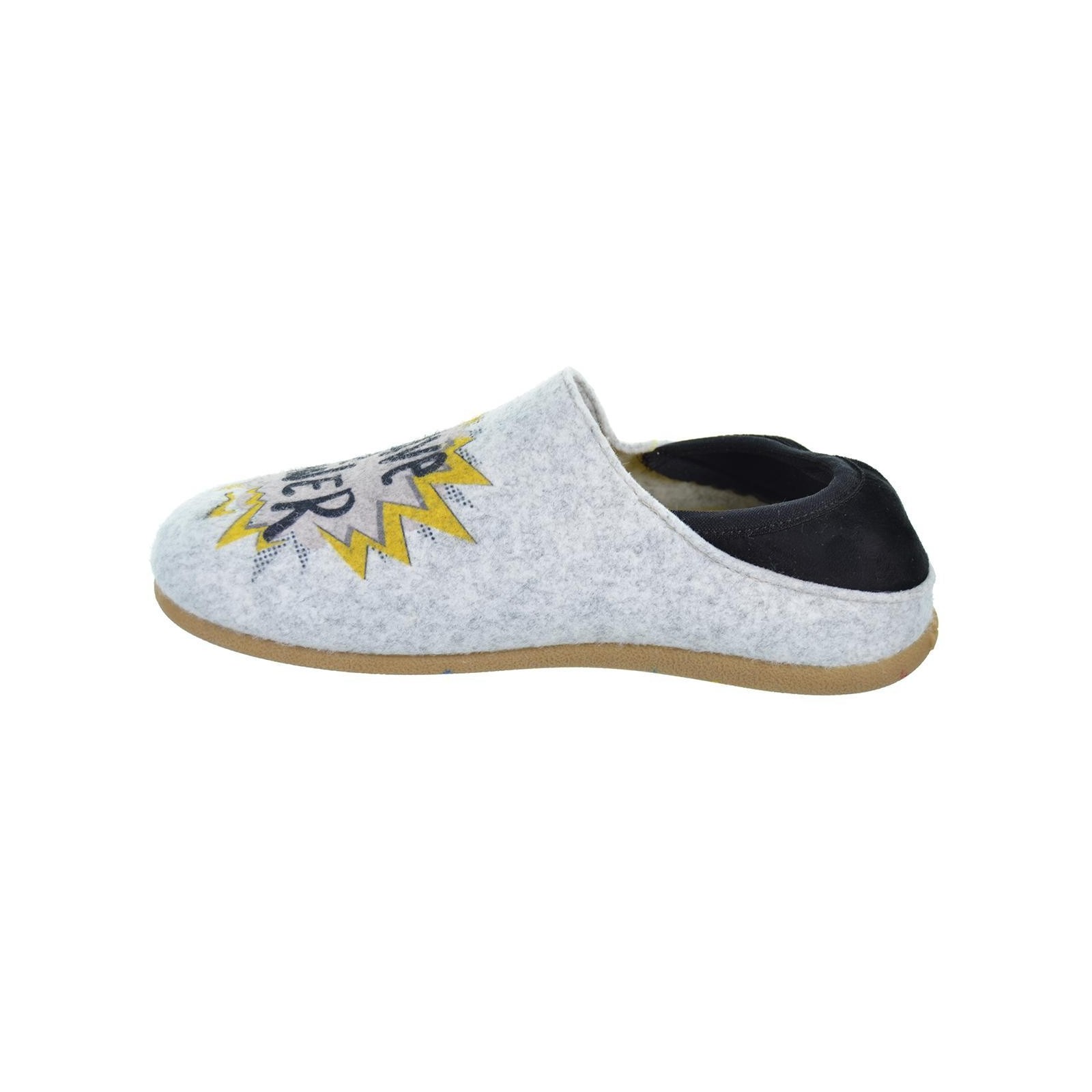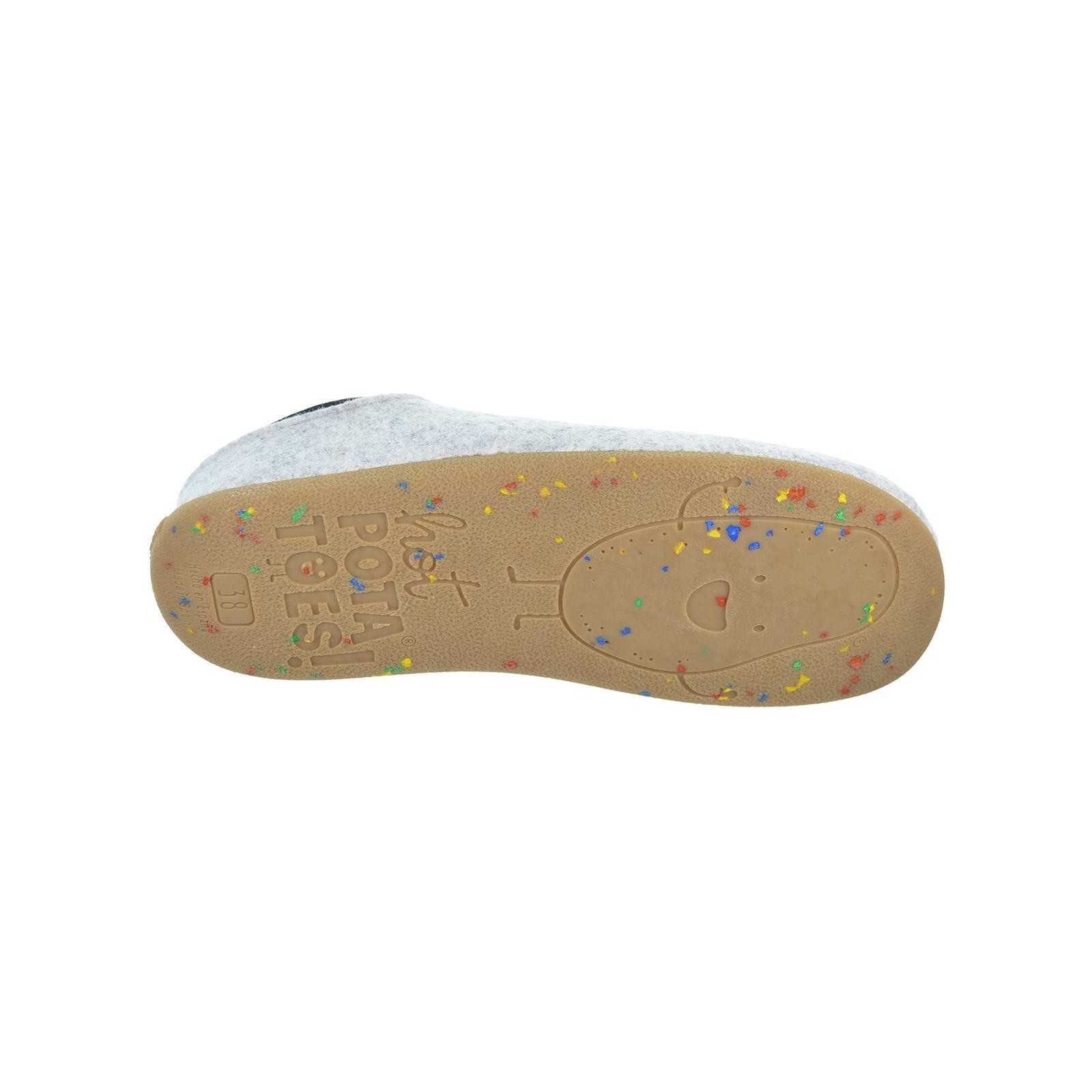 64662 Gaimberg Hot POTATOES!. Zapatilla de estar por casa con talón elástico para un ajuste perfecto, corte estampado de fieltro PET reciclado y planta afelpada de tejido poliéster suave. Plantilla extraible de espuma poliuretano 100% reciclado y suela de caucho natural.Diseñadas para los pies más divertidos y atrevidos.