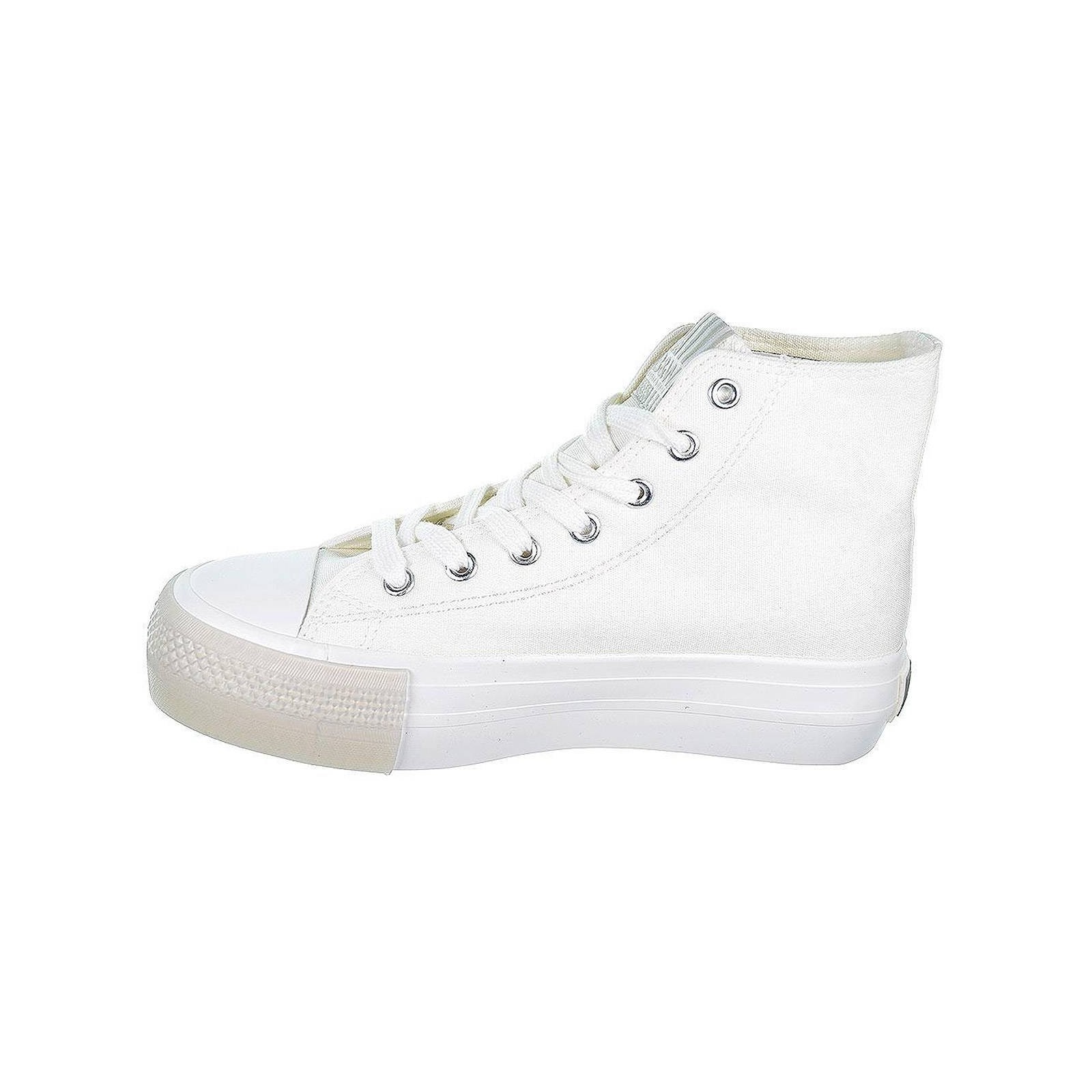 552746 B&W Zapatilla Bota Lona con caña alta, forro interior textil. Cierre cordones ajustables. Piso de plataforma y puntera de goma antideslizante.Tus bambas para el día a día.