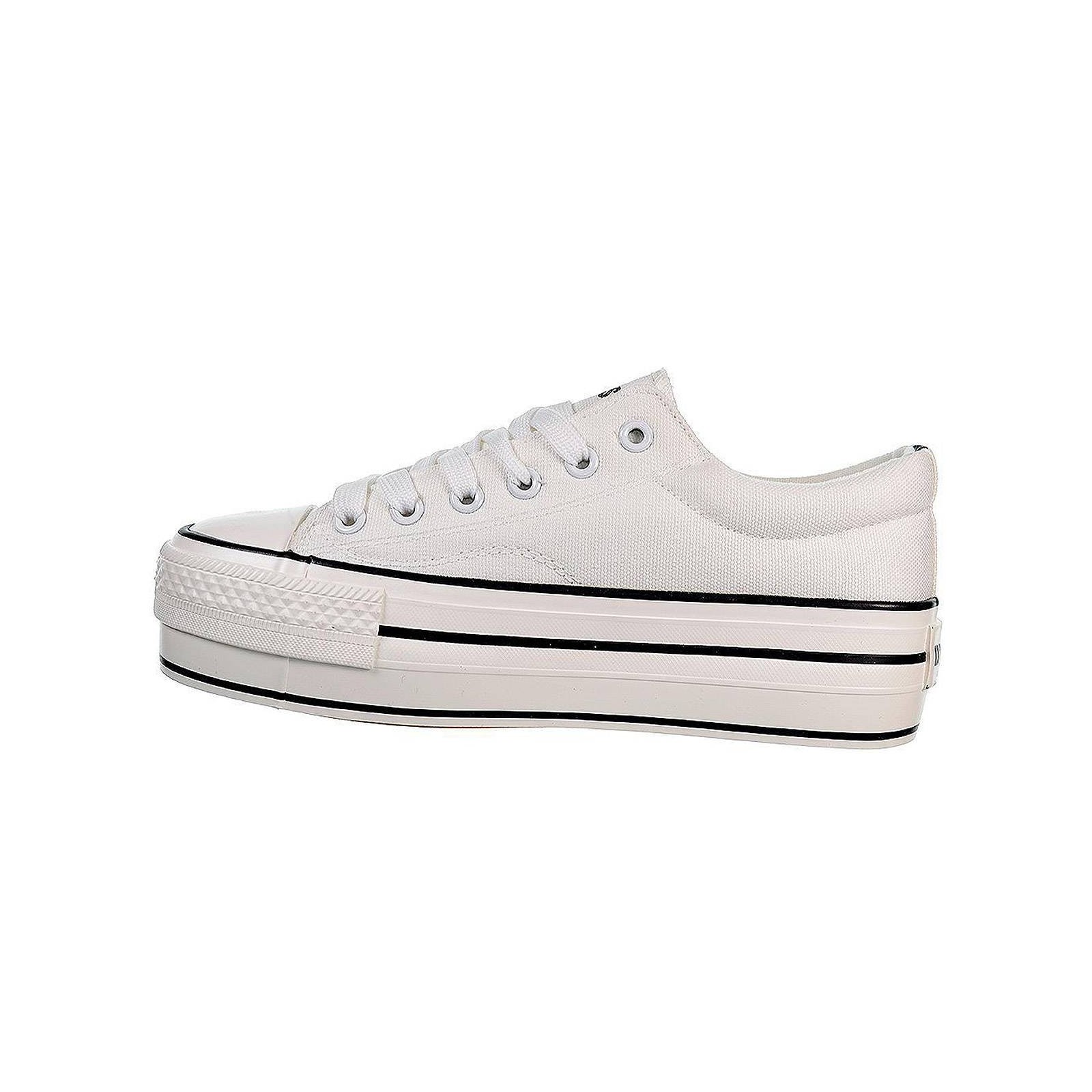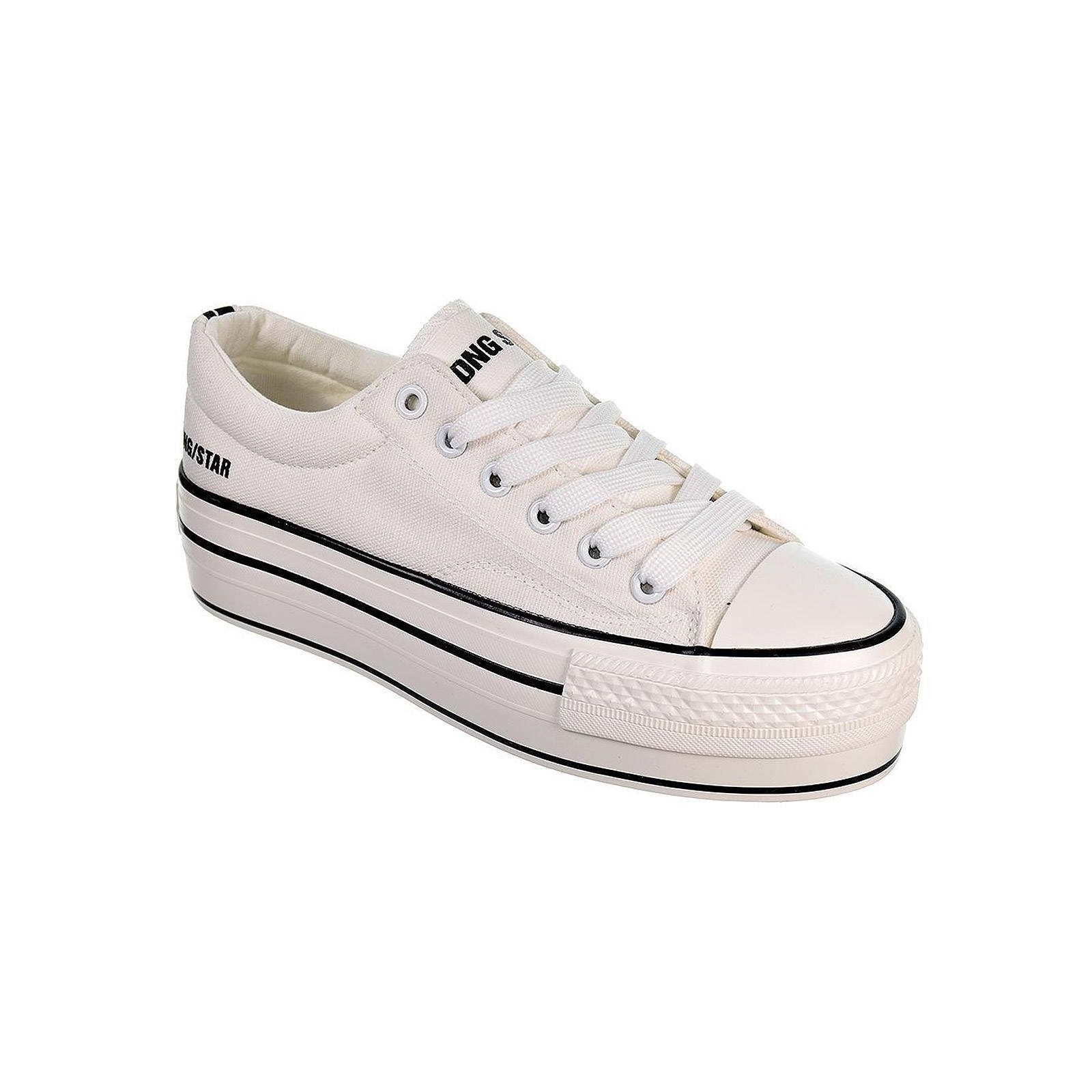 21453 DNG Zapatilla de lona y forro interior textil. Cierre en cordones ajustables. Piso con plataforma y puntera de goma antideslizante. Tus bambas para este verano.