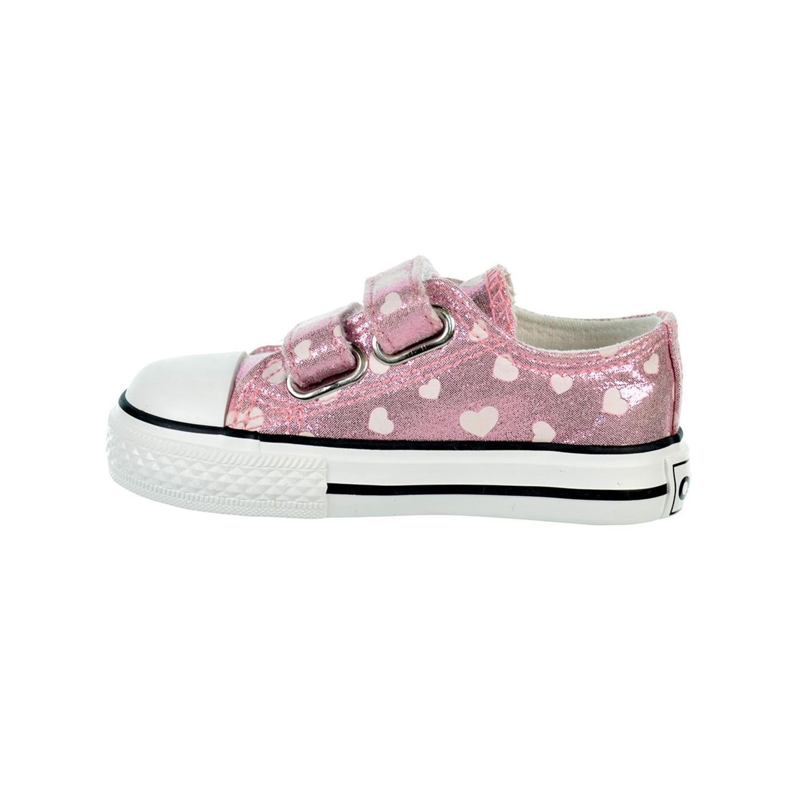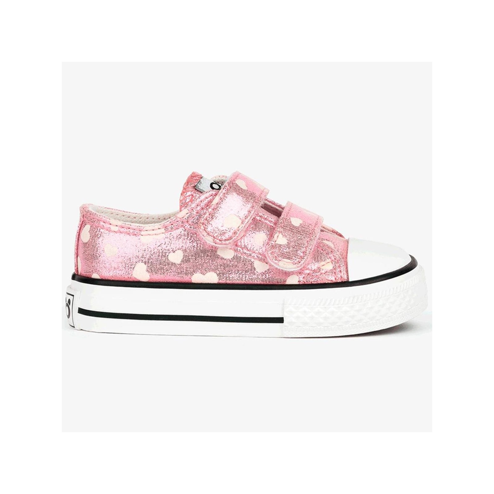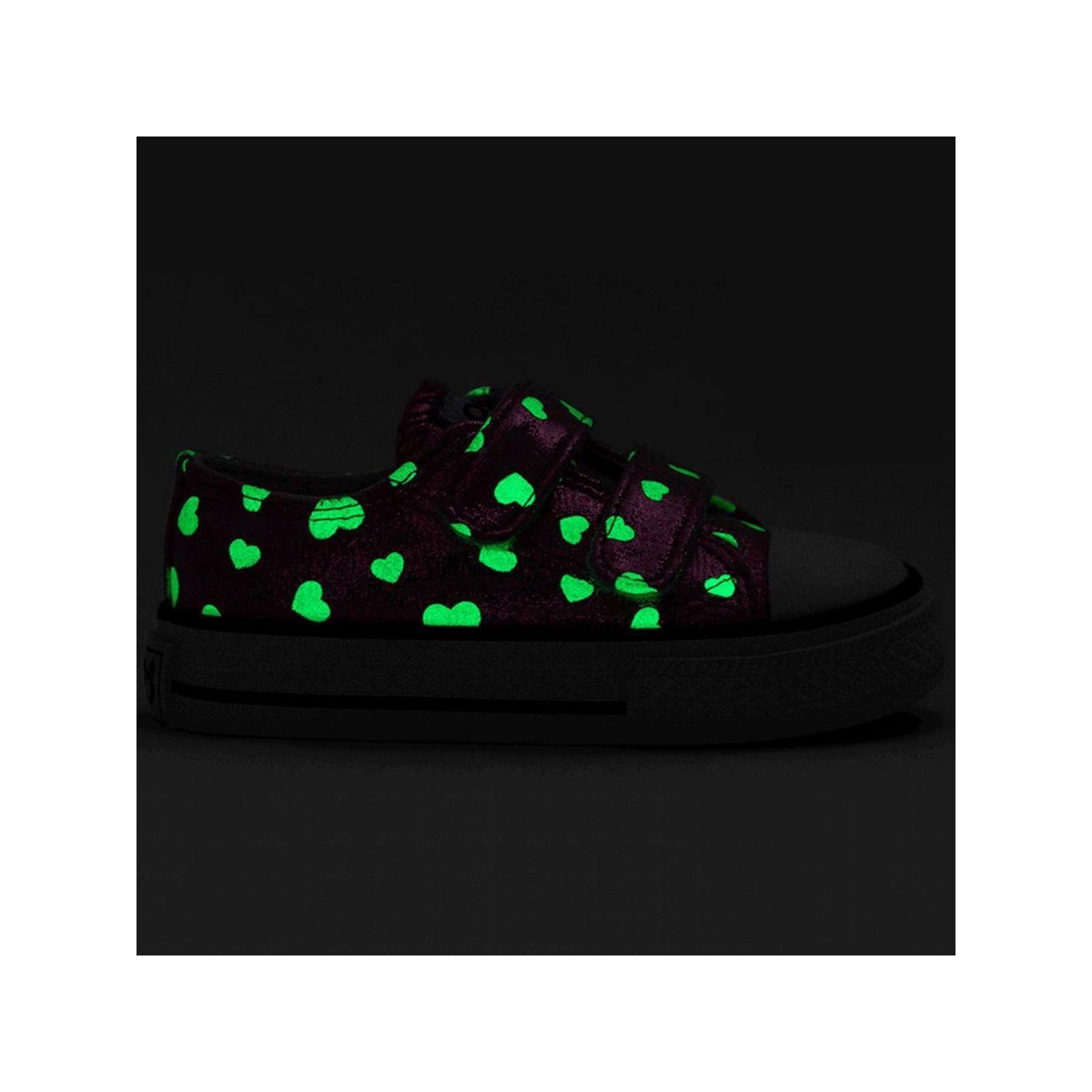 14155 OSITO. Zapatilla en textil metalizado, con estampado de corazones que brillan en la oscuridad. Forro interior textil y cierre con doble velcro ajustables. Piso y puntera de goma antideslizante.Por su versatilidad y comodidad serán las elegidas para el día a día.