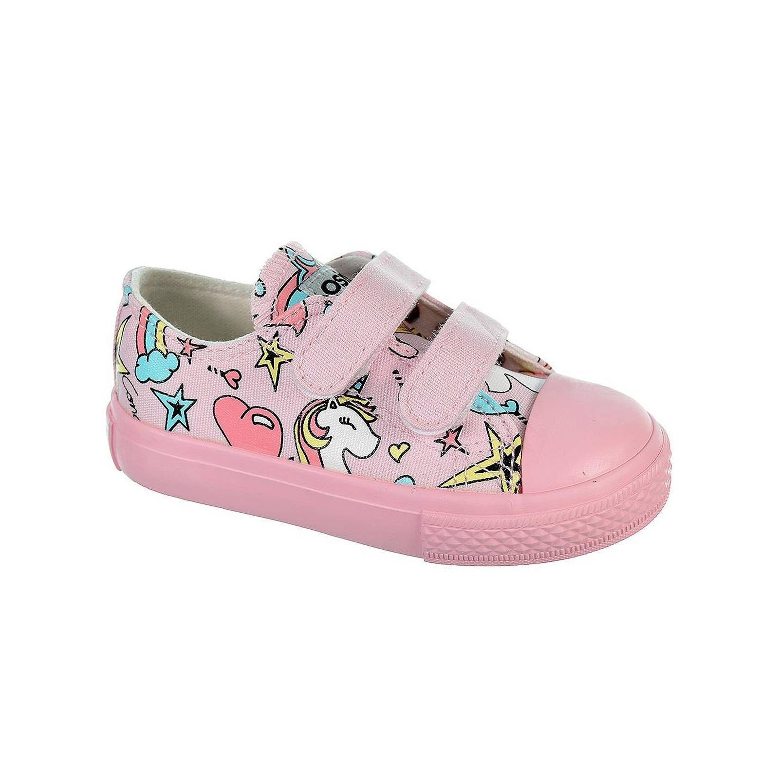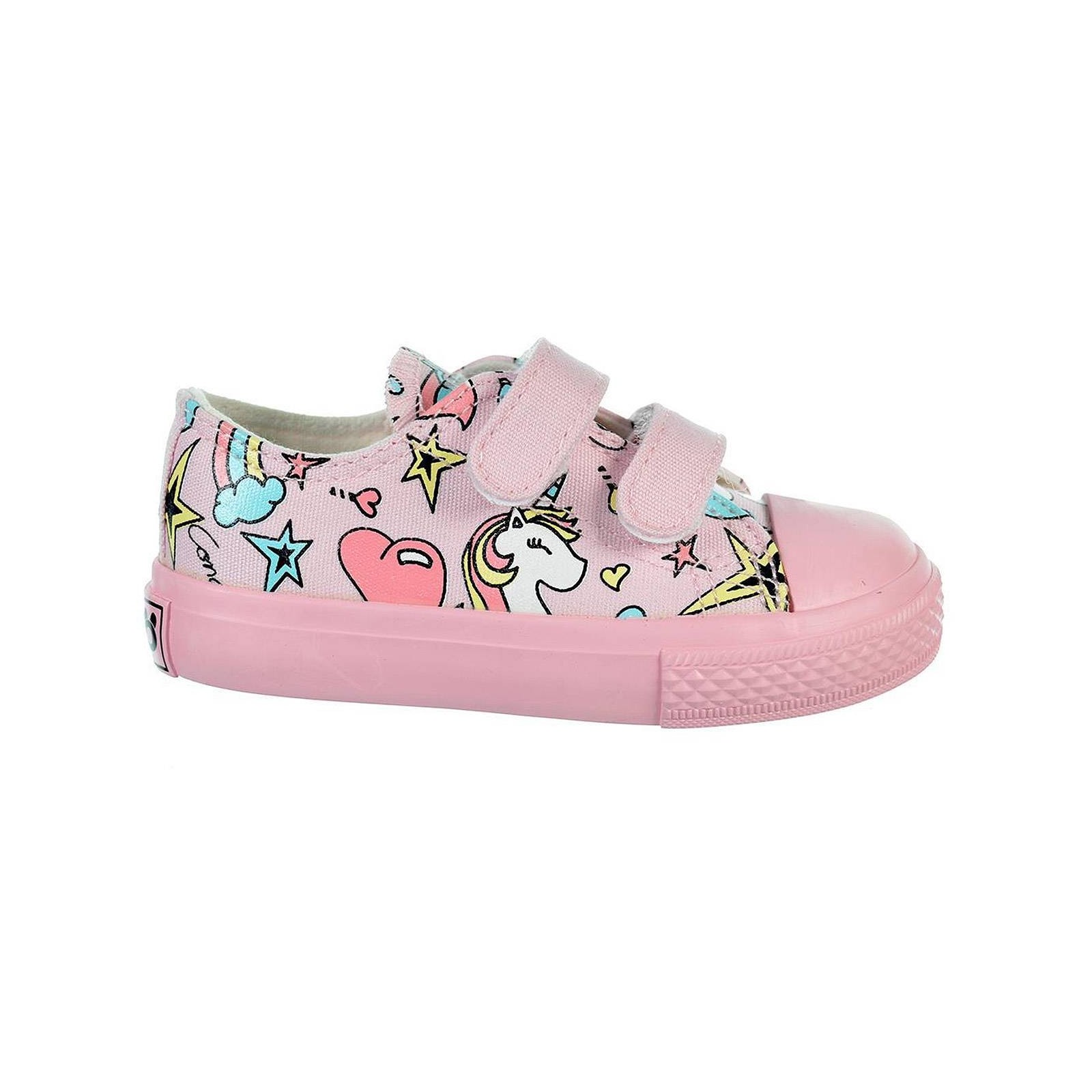 14157 CONGUITOS. Zapatilla de lona con estampado de unicornio y forro interior textil. Cierre con doble velcro ajustables. Piso y puntera de goma antideslizante. Por su versatilidad y comodidad serán las elegidas para tu día a día.