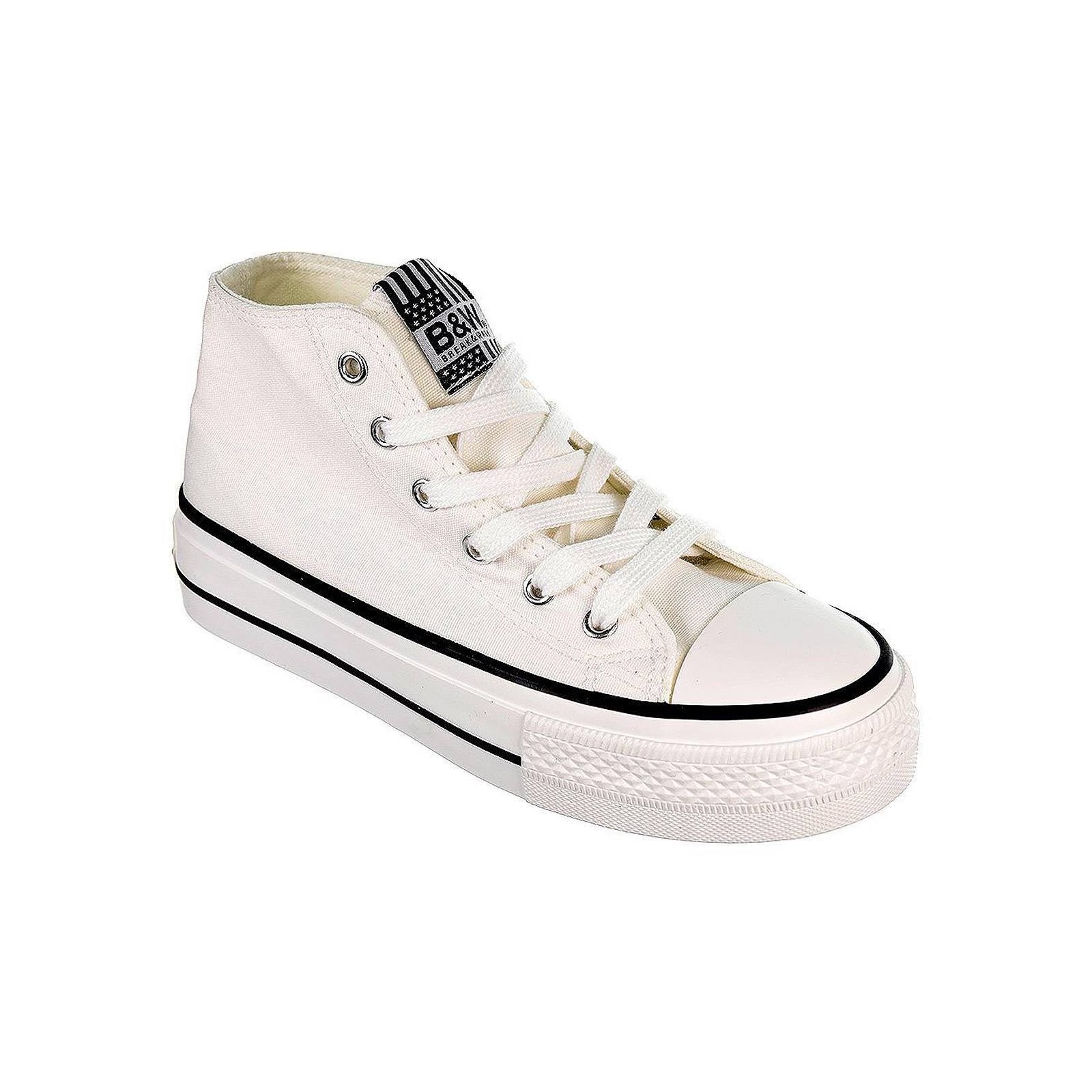 52716 B&W. Zapatilla con caña alta de lona, forro interior textil. Cierre cordones ajustables. Piso de plataforma y puntera de goma antideslizante. Tus bambas para el día a día.