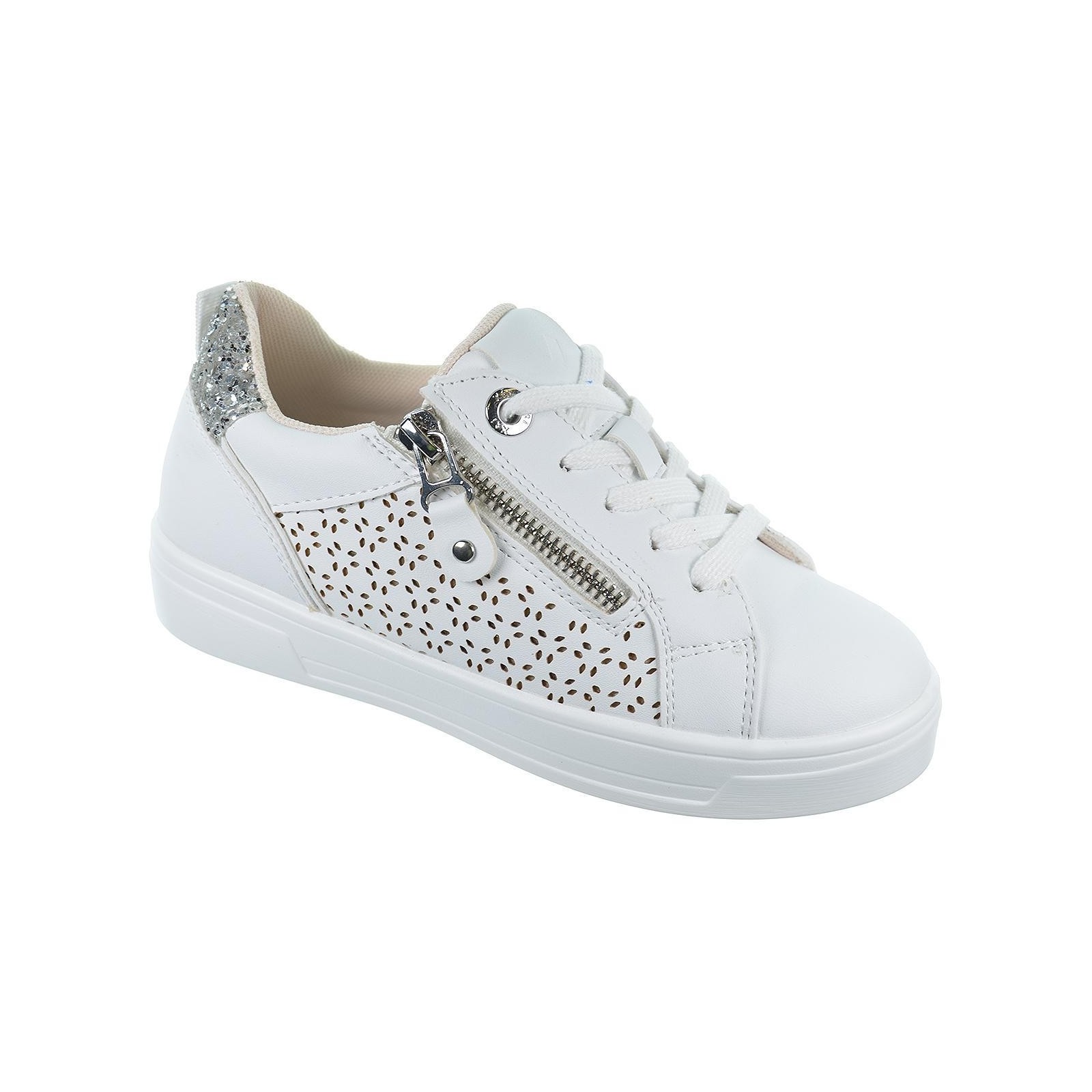 Xti Kids 150698 Zapatilla en un material que imita la piel, con un bonito troquelado, cierre mediante cremallera decorativa y cordones regulables. Suela de 2 cm de goma antideslizante. Este modelo ha obtenido el certificado vegano por la organización mundial PETA (Organización de los derechos de los animales).