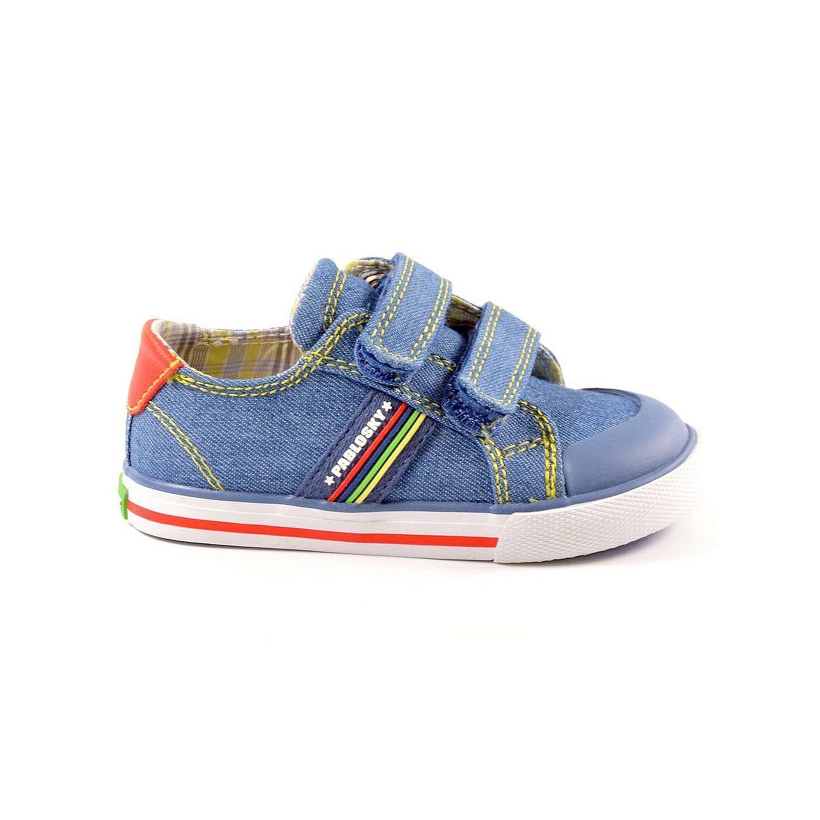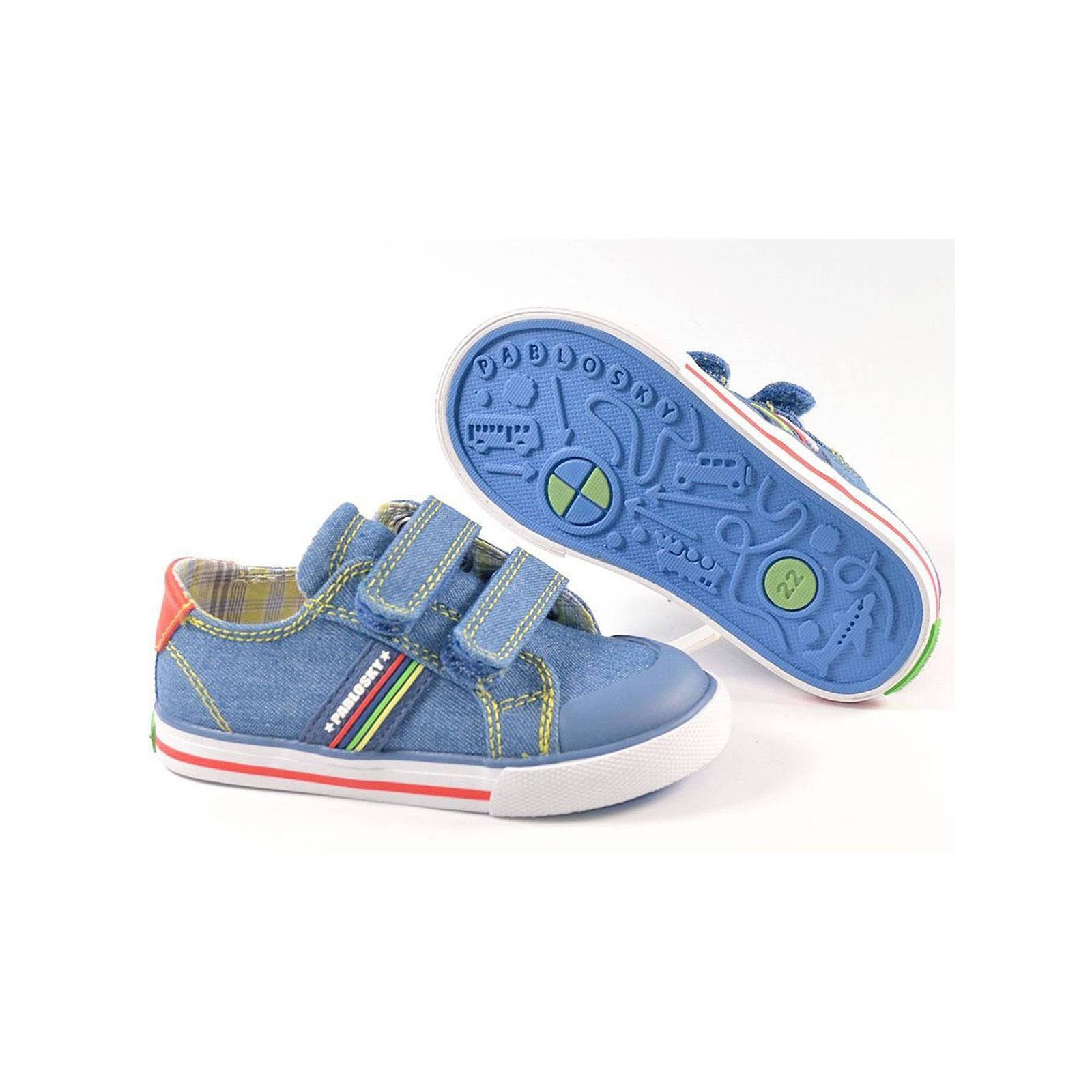 961010 Pablosky. Zapatilla lona, reforzada con puntera de goma. Interior forrado en tejido, con plantilla de piel extraíble. Cierre de doble velcro. piso de goma antideslizante, muy flexible. Marca especializada en calzado para niño. Las lonas perfectas para el día a día.