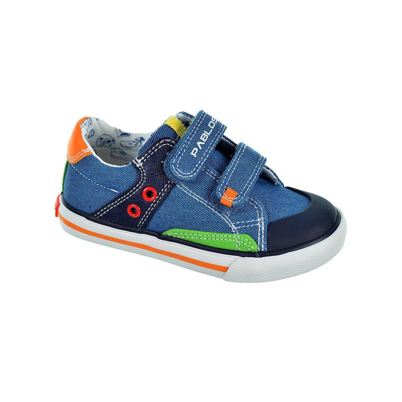 971511 Pablosky Zapatilla Lona, reforzada con puntera de goma. Interior forrado en tejido, plantilla de piel extraíble. Cierre con doble velcro. Piso de goma antideslizante, muy flexible. Marca especializada en calzado para niño. Las lonas ideales para el día a día.