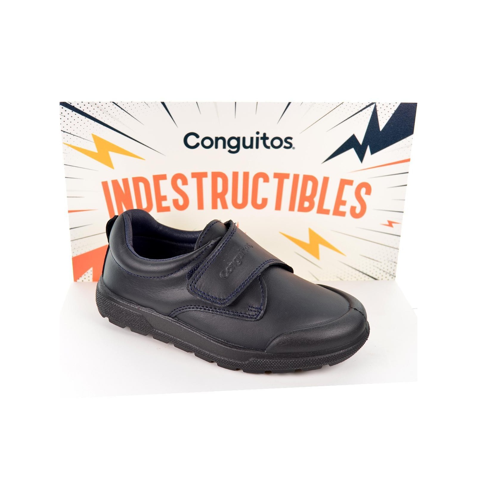 200002 Conguitos Zapato fabricado en piel lavable, cierre con velcro ajustable, forro interior textil y plantilla textil extraíble antibacteriana. Suela de goma ultrarresistente muy flexible y antideslizante, con puntera reforzada. Lavables a máquina a temperatura 30?. Los colegiales ideales por su comodidad y durabilidad.