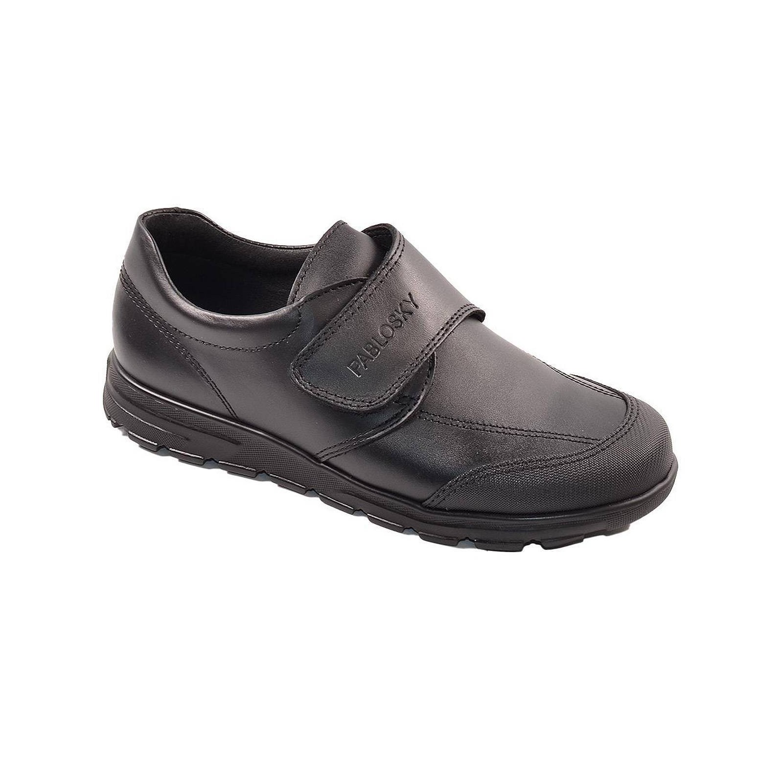 334510 Pablosky. Zapato colegial en material de piel y puntera reforzada. Forro interior y plantilla textil inTech transpirable. Cierre en velcro ajustable. Piso de goma antideslizante, muy flexible. Ideales para el cole, por su resistencia y durabilidad.